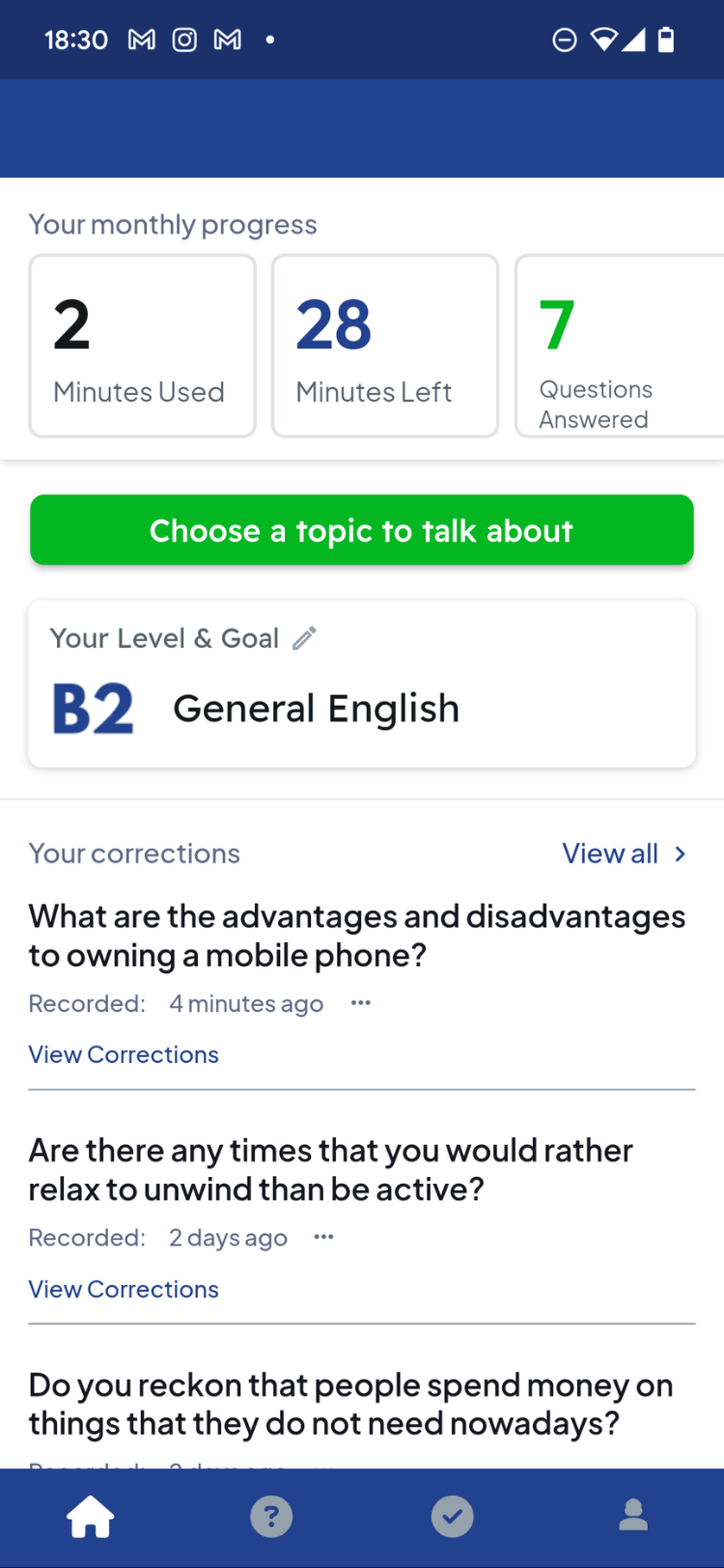 Save on expensive conversation lessons. With 5-Minute English, enjoy limitless talking time with instant corrections, all from the comfort of your home.